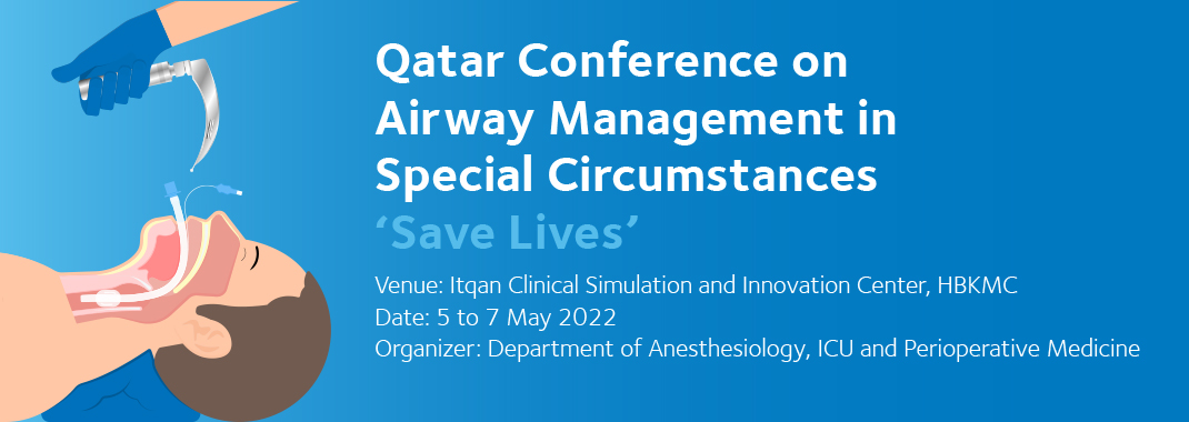 The Department of Anesthesiology, ICU, and Perioperative Medicine is pleased to announce Qatar Conference on Airway Management in Special Circumstances. This two-day event will be held on the 6th and 7th of May 2022 and pre-conference three airway related workshops at state-of-the-art Itqan Clinical Simulation Innovation Center, HBKMC.