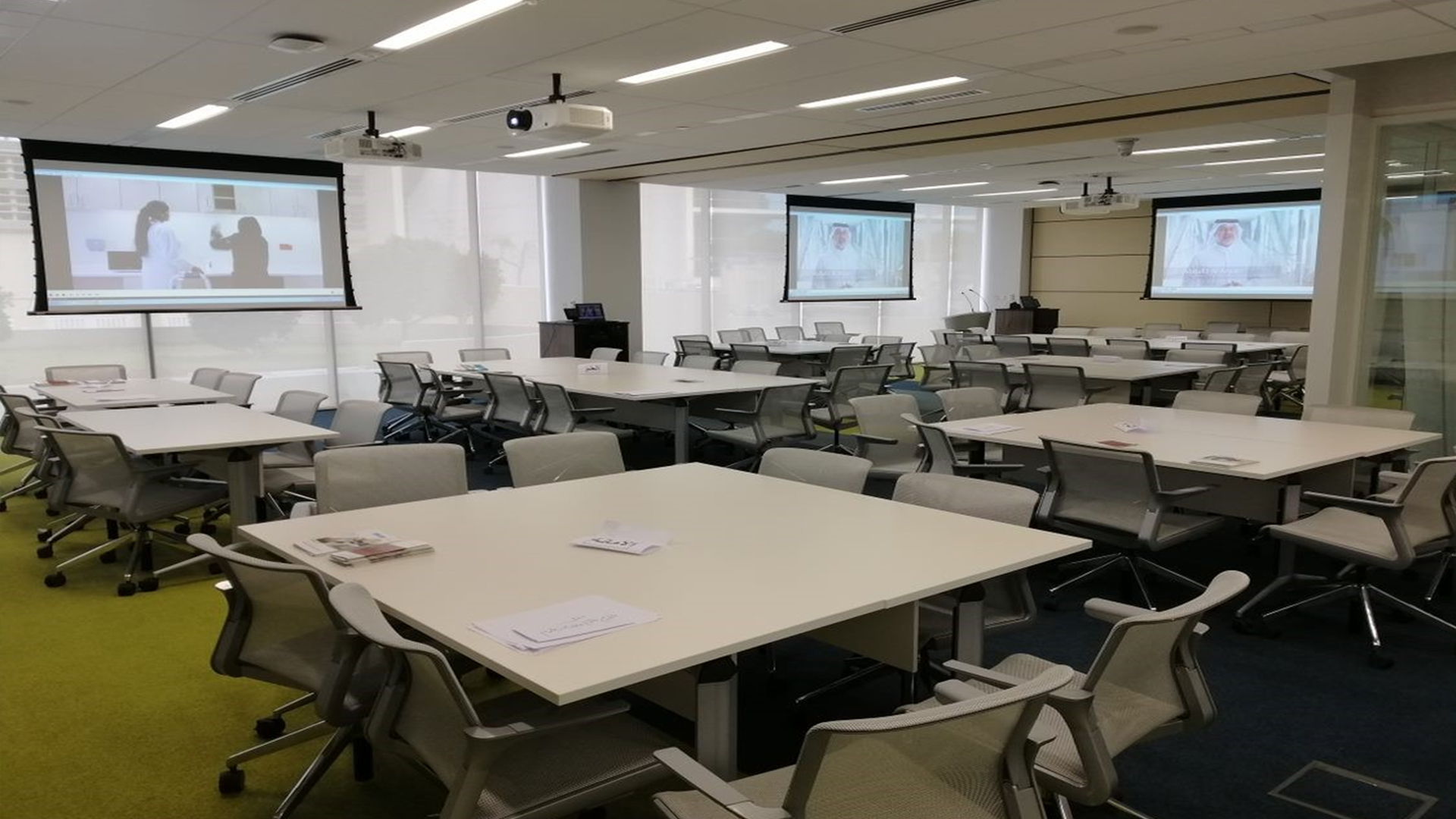 There are multiple debriefing rooms on the first, second, and fourth floors of Itqan. These rooms are used to conduct orientation, prebriefing, observation, debriefing, and evaluations. They can also be used for classroom space. Each room has lecturn, computer, microphone, whiteboard, flip chart, projectors, and flat screen TVs for video playback.